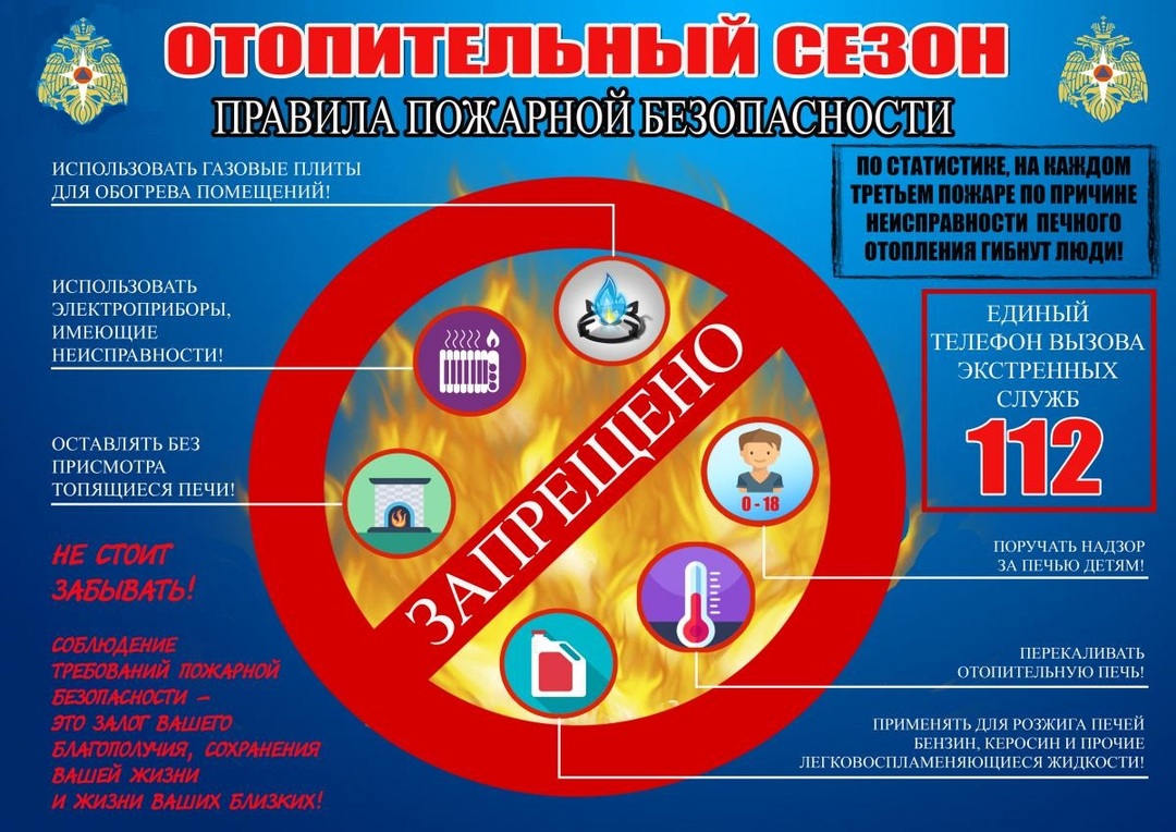 Наступление первых осенних холодов, как правило, связано с активным использованием населением обогревательных приборов. Не соблюдение гражданами элементарных правил пожарной безопасности при эксплуатации печного, электрического, газового оборудования приводит к возникновению пожаров.
