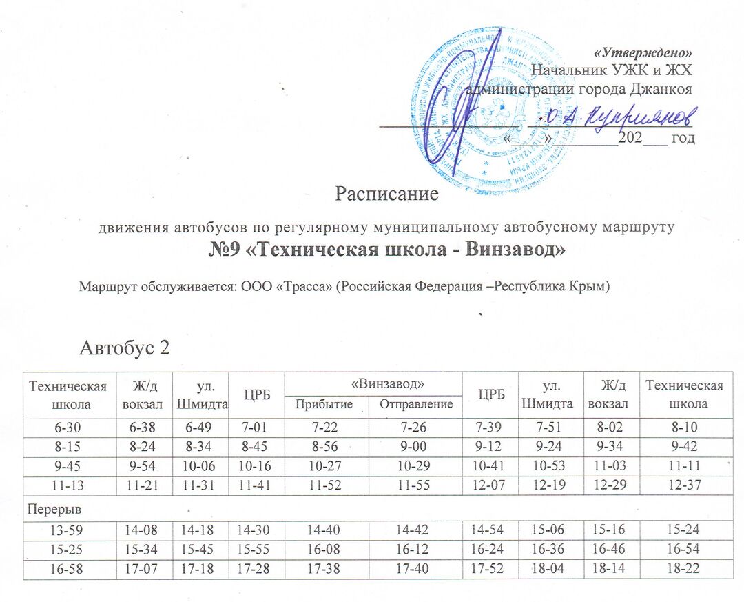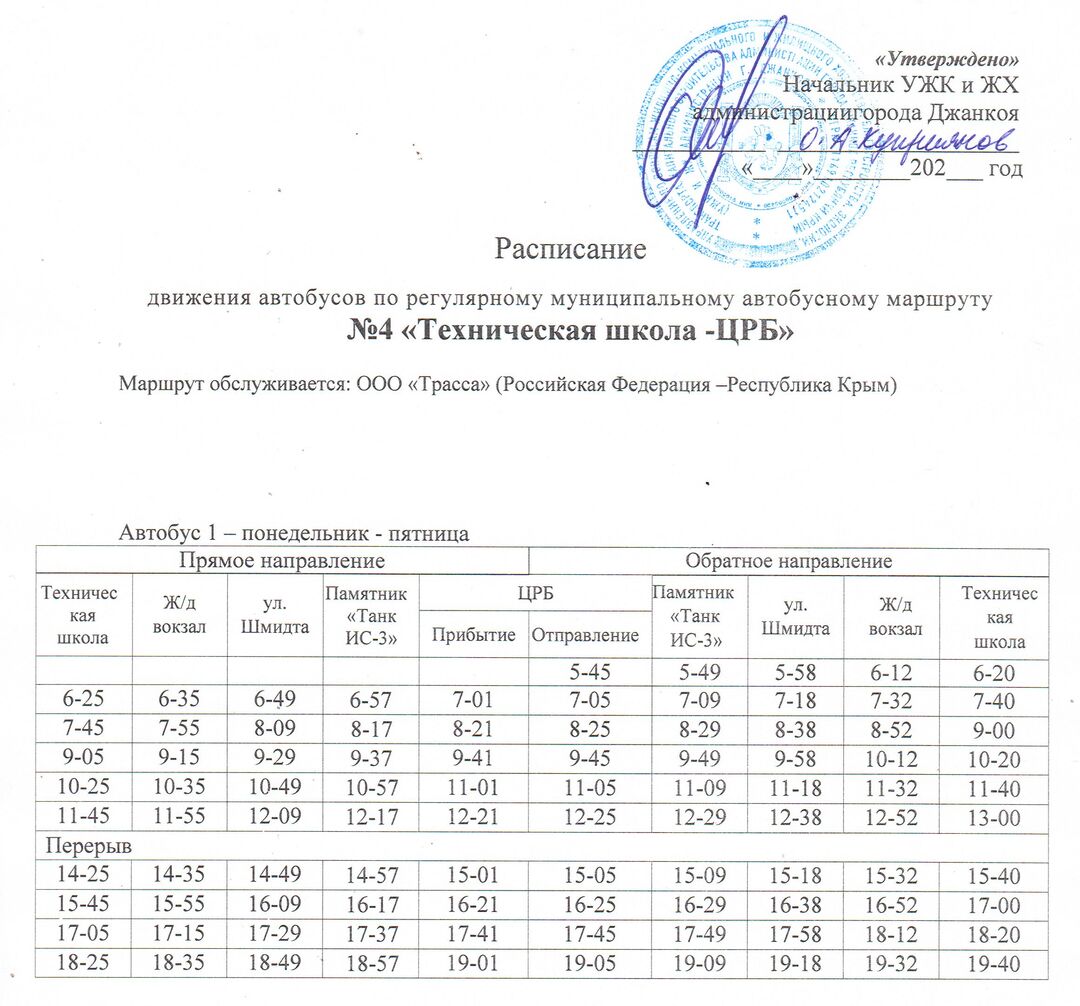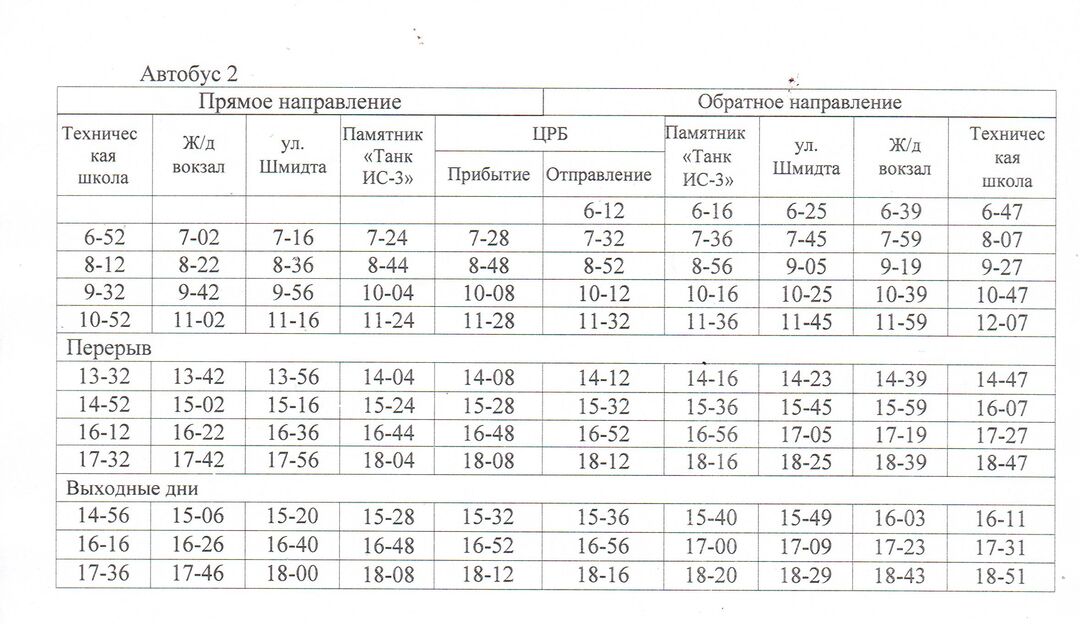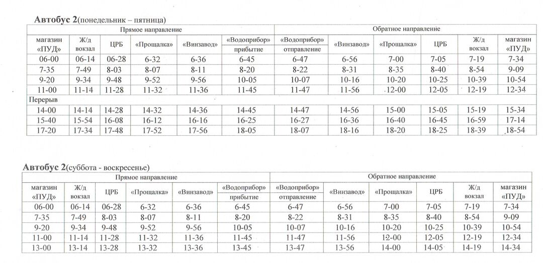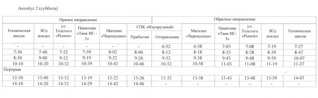 Расписание движения автобусов с 14.12.2020