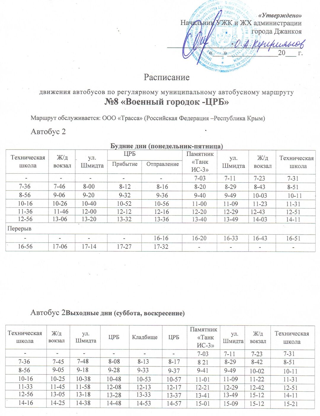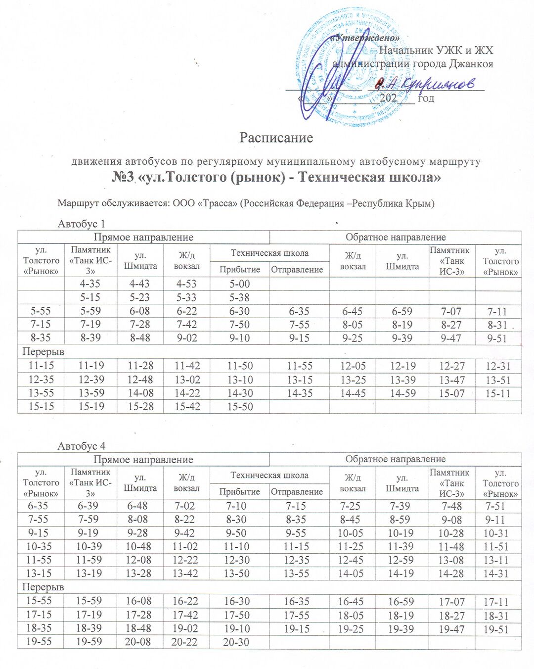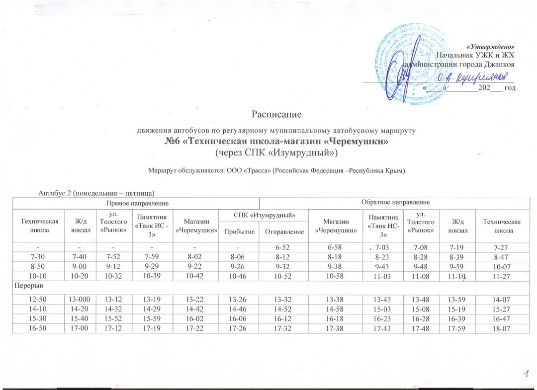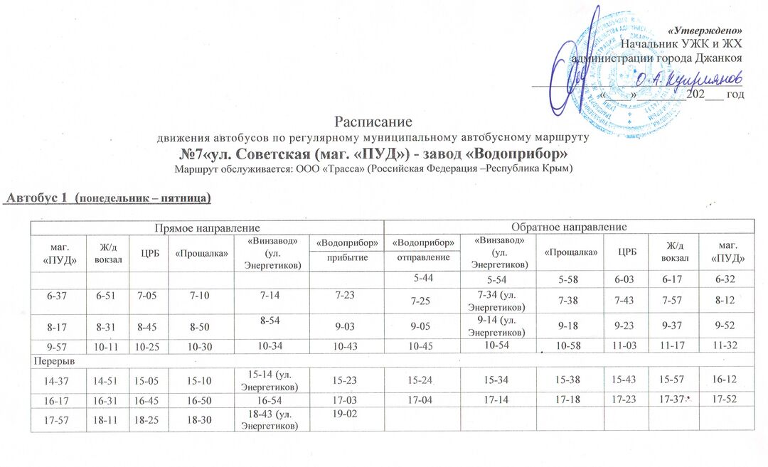 Расписание движения автобусов с 14.12.2020